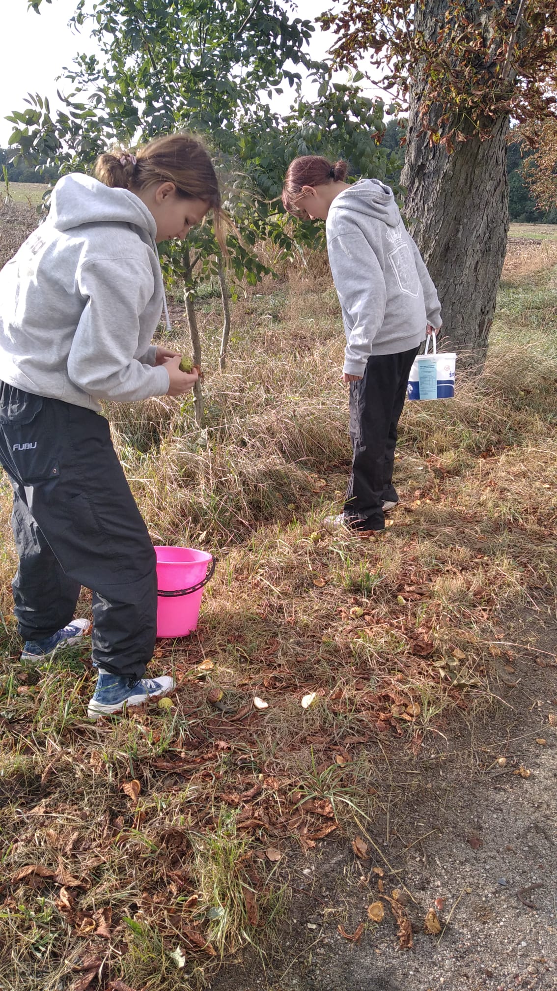 W dniu 5 października 2023 roku grupa szkolnego wolontariatu: Maja Dymitruk, Nikola Borkowska, Natasza Sierpińska, Maja Misiak, Martyna Gorgol i Olwia Pasturczak z klasy 8b wybrały się wraz z opiekunem panią Martą Miedzianowską do Dziembowa, żeby pozbierać kasztany i wesprzeć zbiórkę dla Gabrysi z Szamocina.