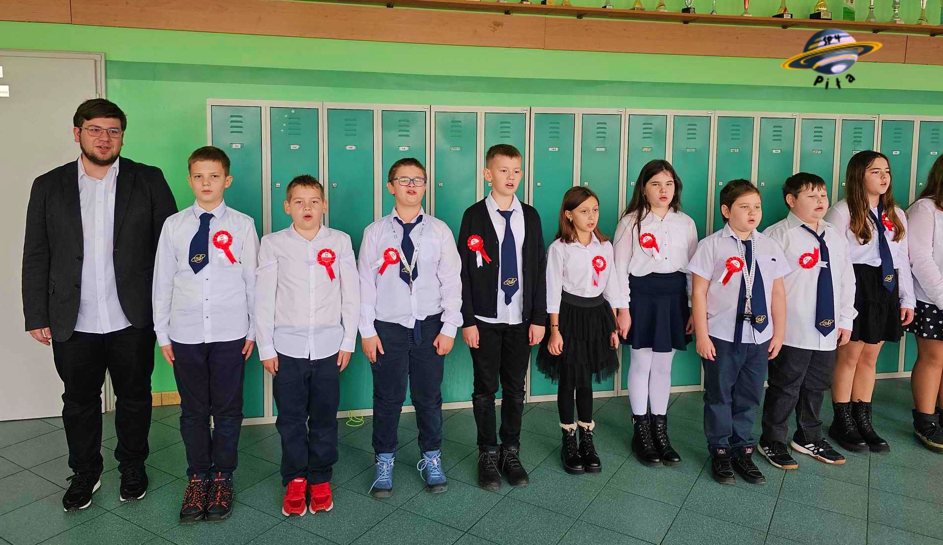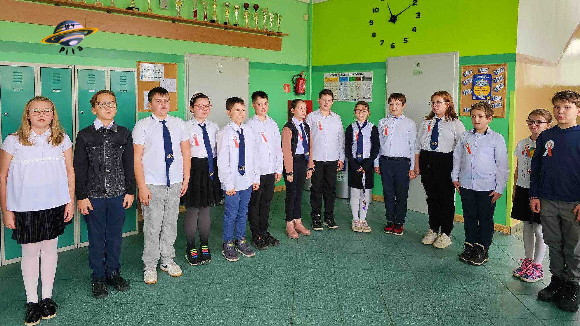 Odświętnie ubrani zapełniliśmy szkolne korytarze i najpiękniej jak umiemy odśpiewaliśmy 4 zwrotki naszego hymnu narodowego, łącząc się z dziesiątkami szkół, przedszkoli i innych placówek oświatowych.