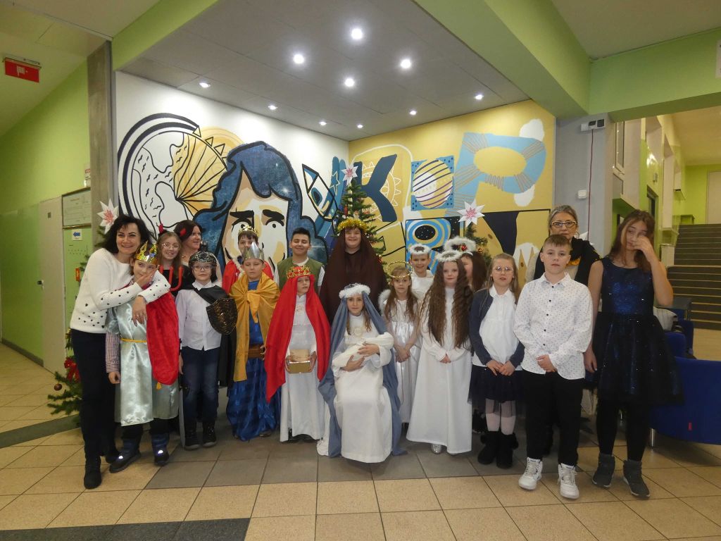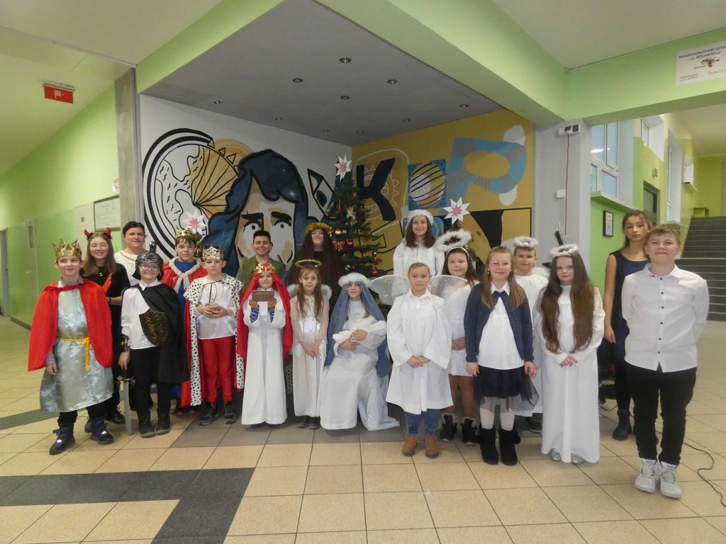 Z okazji Świąt Bożego Narodzenia uczniowie kl.3a i 7a przedstawili inscenizację słowno-muzyczną przypominając historię Narodzenia Pana Jezusa przygotowaną przez panią Joannę Murach i Katarzynę Jarząbkiewicz. Oprawę muzyczną przygotowała pani Katarzyna Kozak, a całość nagrał pan Mateusz Błażejewski.