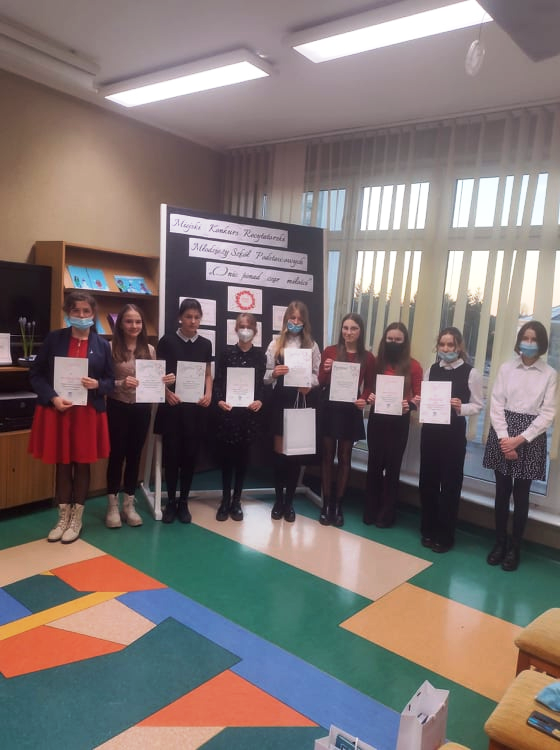 Naszą szkołę reprezentowały trzy uczennice – Maja Wygrzywalska z klasy 8d, Agata Gofron z klasy 7b oraz Zuzanna Świrkula z klasy 7e. Wszyscy uczestnicy włożyli w swe wystąpienia dużo serca oraz emocji, recytując najpiękniejsze strofy o miłości. Dziewczęta w poruszający sposób zaprezentowały utwór Wisławy Szymborskiej, Agnieszki Osieckiej i Jana Brzechwy. Z wielką radością i dumą informujemy, że uczennica klasy 7b Agata Gofron otrzymała WYRÓŻNIENIE w Konkursie. Serdecznie gratulujemy niezwykłej wrażliwości poetyckiej oraz dojrzałości!