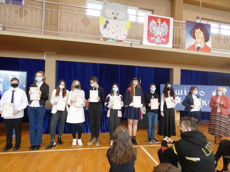 Organizowany z tej okazji uroczysty apel jest jednocześnie podsumowaniem naszej pracy w I półroczu. Najlepsi uczniowie z klas 7-8, którzy uzyskali średnią ocen powyżej 4,75 i wzorowe zachowanie, otrzymali tytuł i odznaczenie Kopernikanina.