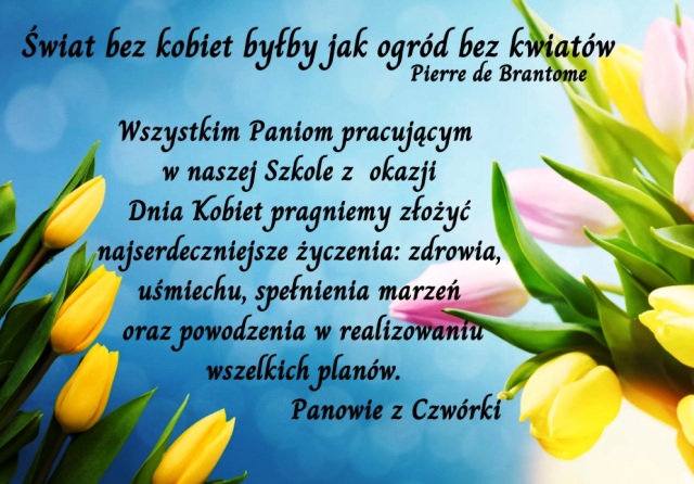 Czwórkowi panowie i chłopcy sprawili, że był to piękny świąteczny dzień. Były piękne życzenia, słodkości, miłe upominki, zdrowe owoce i "Sto lat" śpiewane w każdej klasie. Dziękujemy!!!