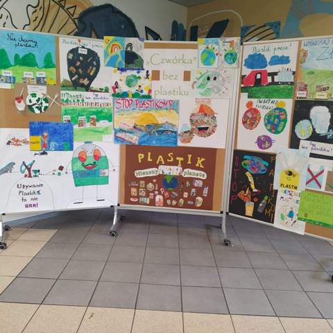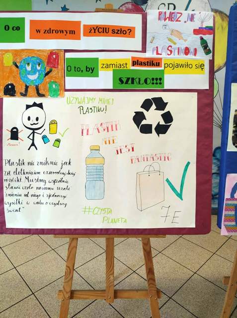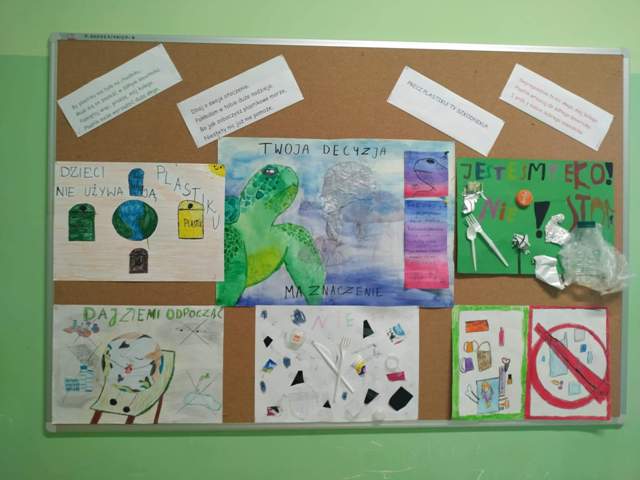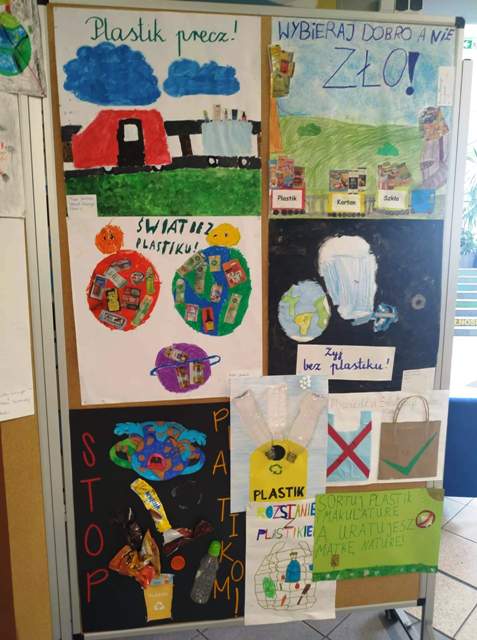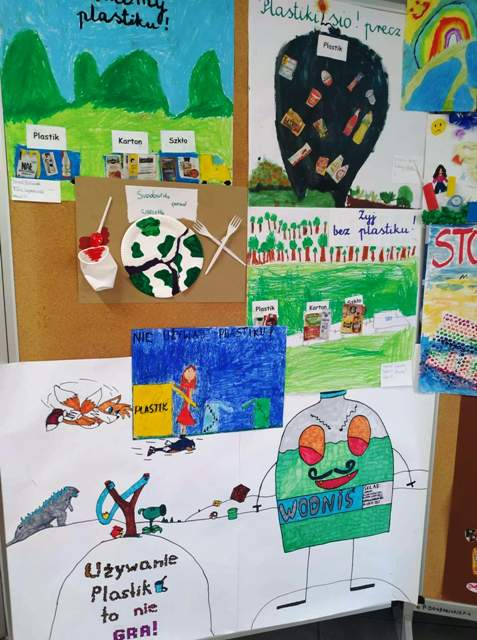 Podsumowaliśmy Tydzień bez plastiku w naszej szkole. Uczniowie wykonali plakaty, układali hasła wykorzystując wiedzę zdobytą podczas spotkań. Oto pracę uczniów. Ilość prac świadczy o zainteresowaniu się problemem.
