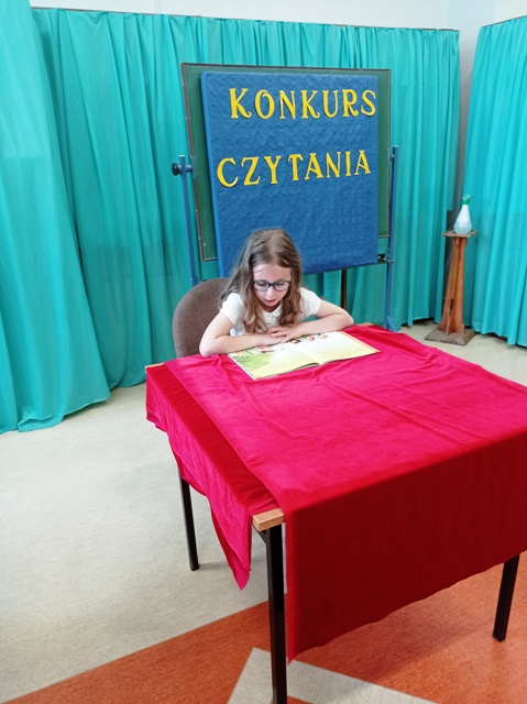 W czwartek 9 czerwca odbył się „Szkolny konkurs pięknego czytania uczniów klas 2”. Wzięło w nim udział 14 osób. Jury oceniało następujące umiejętności uczniów: poprawność, płynność, odpowiednią intonację, tempo czytania. Dzieci prezentowały tekst przygotowany przez siebie oraz nowy - wylosowany ( przygotowany przez organizatora). Oto osoby nagrodzone: