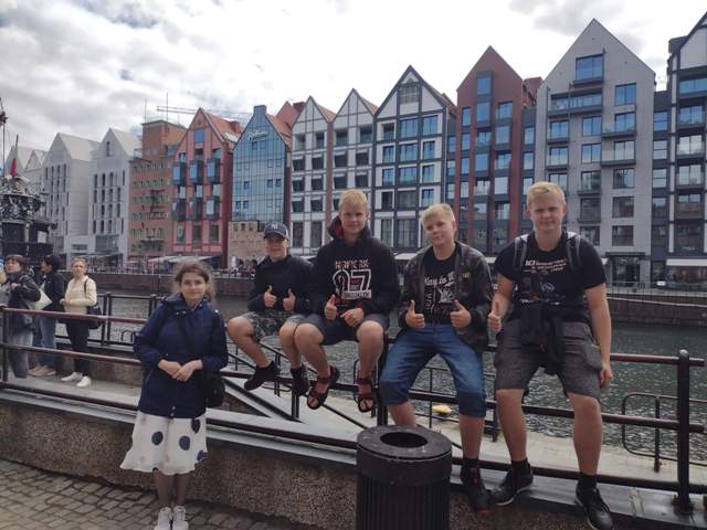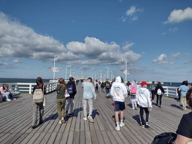 Gdańsk próbował nas zgubić swoimi krętymi ulicami, ale nie daliśmy mu się i - po zjednoczeniu z grupą, idącą z gali - spędziliśmy czas w galerii „Forum”. Następnie wróciliśmy na starówkę, aby zjeść obiad w barze „Pyra”. Z pomocą życzliwych miejscowych dotarliśmy na dworzec główny, skąd koleją SKM pojechaliśmy do Sopotu. 20-minutowa podróż była świetnym odpoczynkiem. Potem spacerowaliśmy po molo i, korzystając z faktu, że nie musimy płacić za niego podatku, wdychaliśmy jod. Następnie mieliśmy czas wolny na leżenie na plaży, jedzenie lodów i zakupy. Wracając do domu, oglądaliśmy mecz, co było bardzo ekscytujące. Przez cały dzień tak się dotleniliśmy i zrelaksowaliśmy, że w nocy sen przyszedł natychmiastowo. Na pewno będziemy z uśmiechem wspominać ten wyjazd jako „stare, dobre czasy”!!