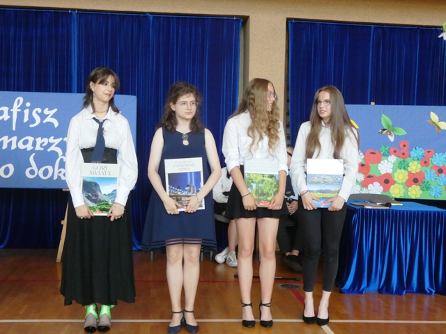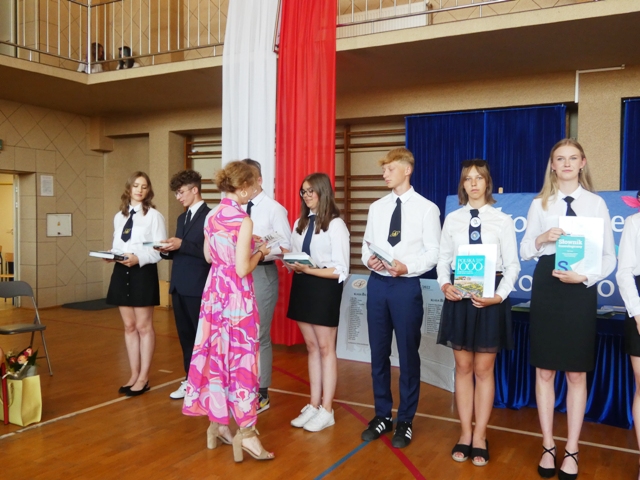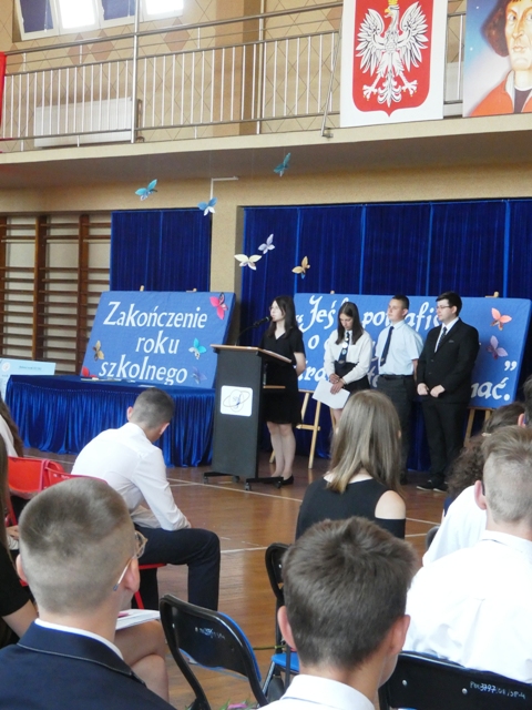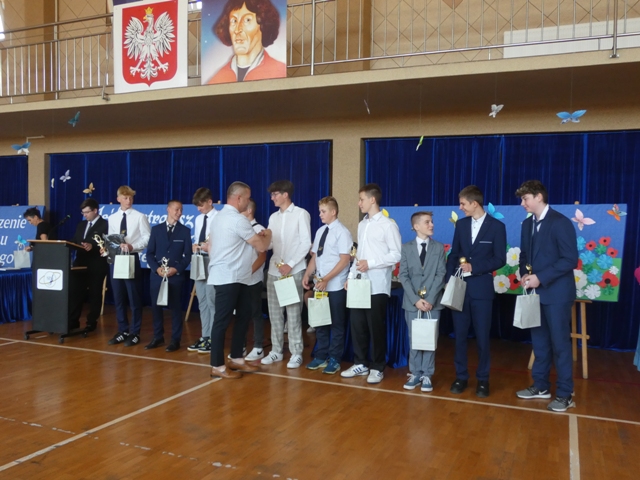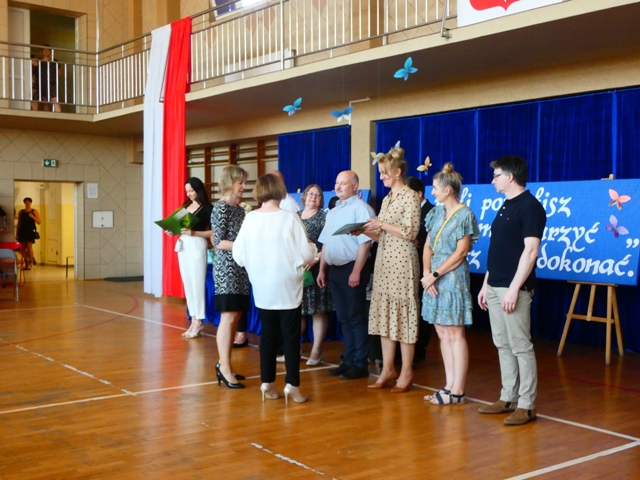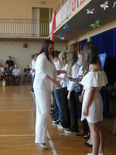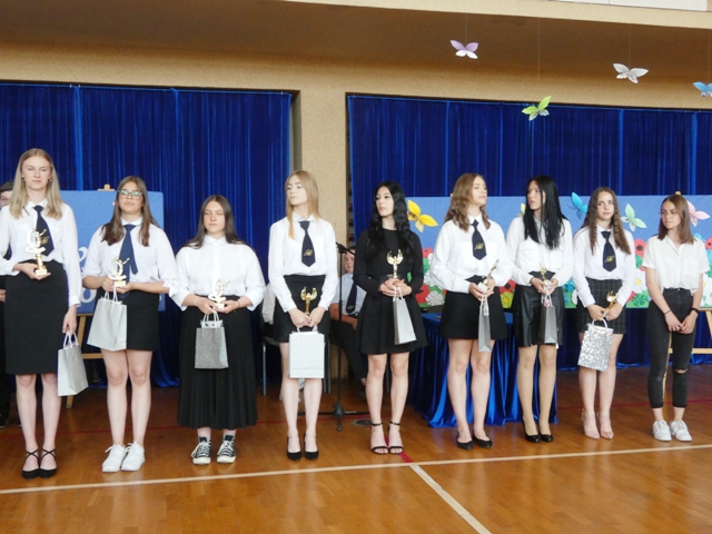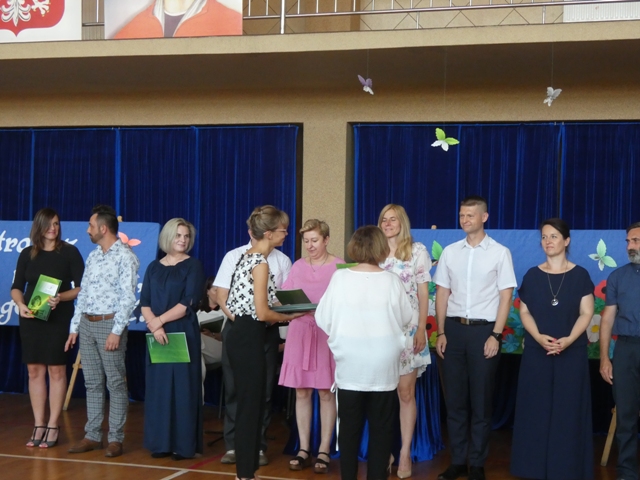 Statuetki sportowca szkoły otrzymali Julia Habet i Jakub Rosiński. Doceniono również wkład rodziców w wychowanie dzieci oraz zaangażowanie w pracę szkoły. Uczniowie klas 7 wręczyli upominki swoim starszym koleżankom i kolegom. W ramach wdzięczności wręczono kwiatki dyrekcji oraz nauczycielom. Pożegnano odchodzące na emeryturę panie Barbarę Szczecinę oraz Bożenę Pilarską.