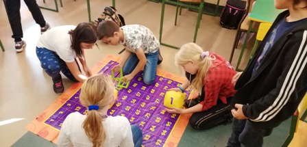 W piątek 7 października w naszej szkole odbył się wielki egzamin z tabliczki mnożenia. Były kodowane zagadki, plakaty, odpytywanie przez komisje, zabawy ze specjalną matą i kostkami a także łowienie ryb!