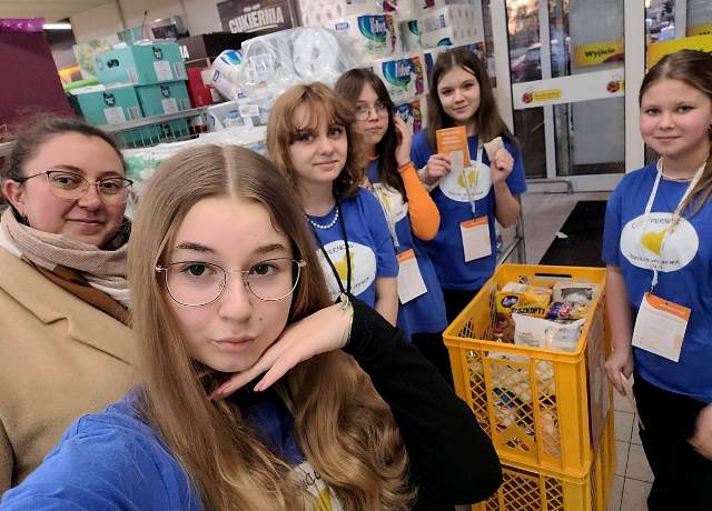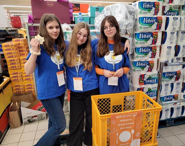 W dniu 24-25 marca 2023 r. wolontariusze naszej szkoły wraz z opiekunami zbierali w sklepie Biedronka żywność. Olej, mąka, cukier, makarony, ryż, konserwy czy słodycze zapewnią osobom potrzebującym pełnowartościowe posiłki.