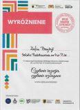 WYRÓŻNIENIE w XIV edycji Ogólnopolskiego Wielkiego Maratonu Czytelniczego „Czytanie rozwija, czytanie wzbogaca” dla uczniów klas 4-6 otrzymała Zofia Przybył z klasy 5b.