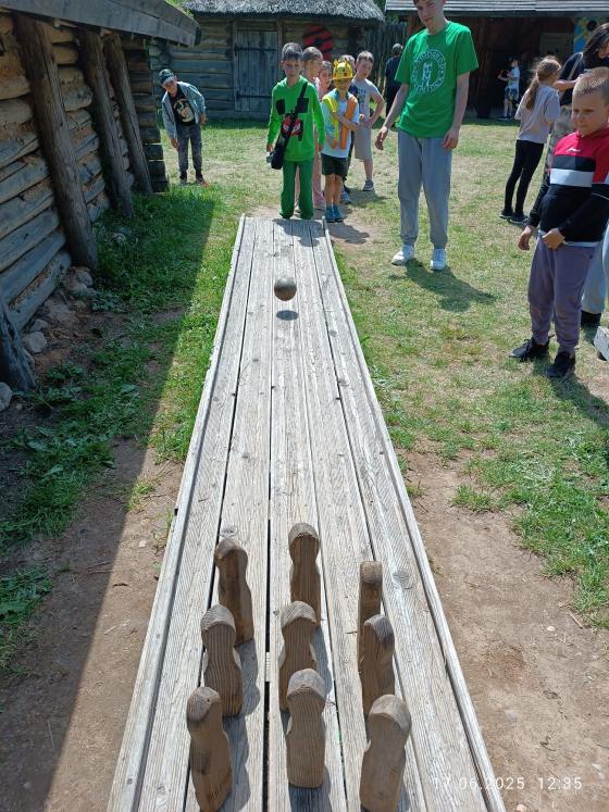 We wtorek 17 czerwca uczniowie klas 1a i 2a wybrali się na wycieczkę do Sławogrodu k. Czaplinka. Sławogród jest rekonstrukcją warowni wczesnośredniowiecznej. Z zewnątrz widać bramę ze strażnicą oraz ogromną palisadę. Po przekroczeniu bramy dzieci przeniosły się do świata naszych przodków. Widziały chatę wyposażoną w eksponaty, o których opowiadali przewodnicy, świątynię i zagrodę z królikami. Zwiedzały kuźnię oraz wybijały pamiątkowe monety. Następnie brały udział w warsztatach kulinarnych .Wszystkie dzieci same robiły podpłomyki. Kolejną atrakcją był spacer ścieżką edukacyjną po lesie, podczas którego można było zobaczyć m.in.chatę Baby Jagi oraz krasnale. Po smacznym obiedzie był czas na zabawy: strzelanie z łuku, przeciąganie liny, walka na bezpieczne miecze, gra w kręgle, łowienie ryb oraz wyścig hobby horse. Ostatni punkt wycieczki to kupowanie upominków. Wycieczka do Sławogrodu była żywą lekcją historii. Wszyscy zadowoleni i szczęśliwi bezpiecznie dojechaliśmy do Piły.